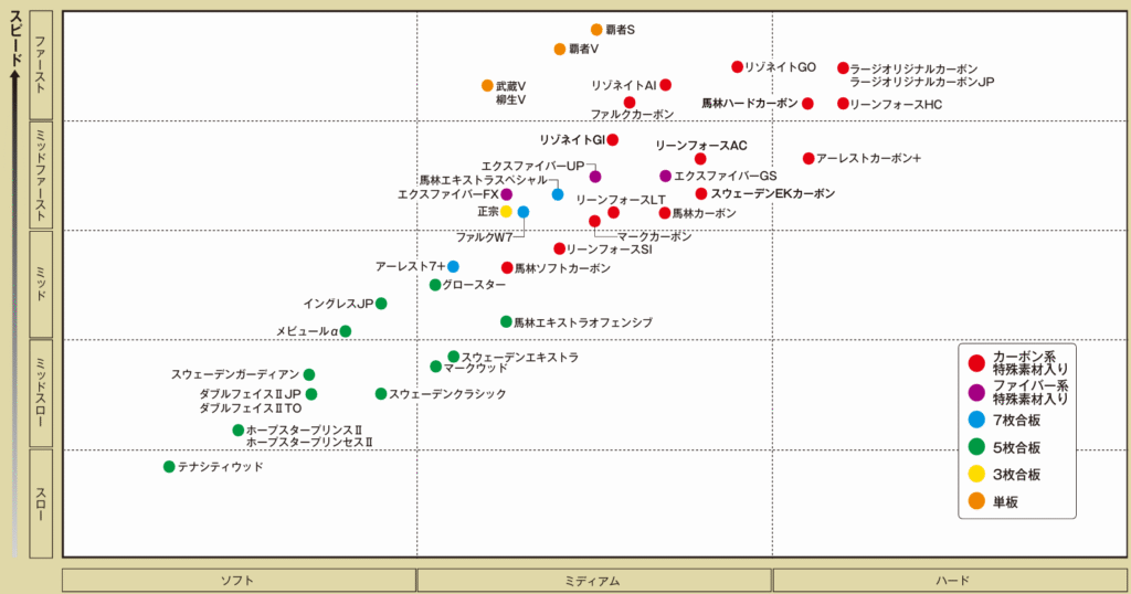 出典:ラケットの特性比較|ラケット|製品情報|バタフライ卓球用品